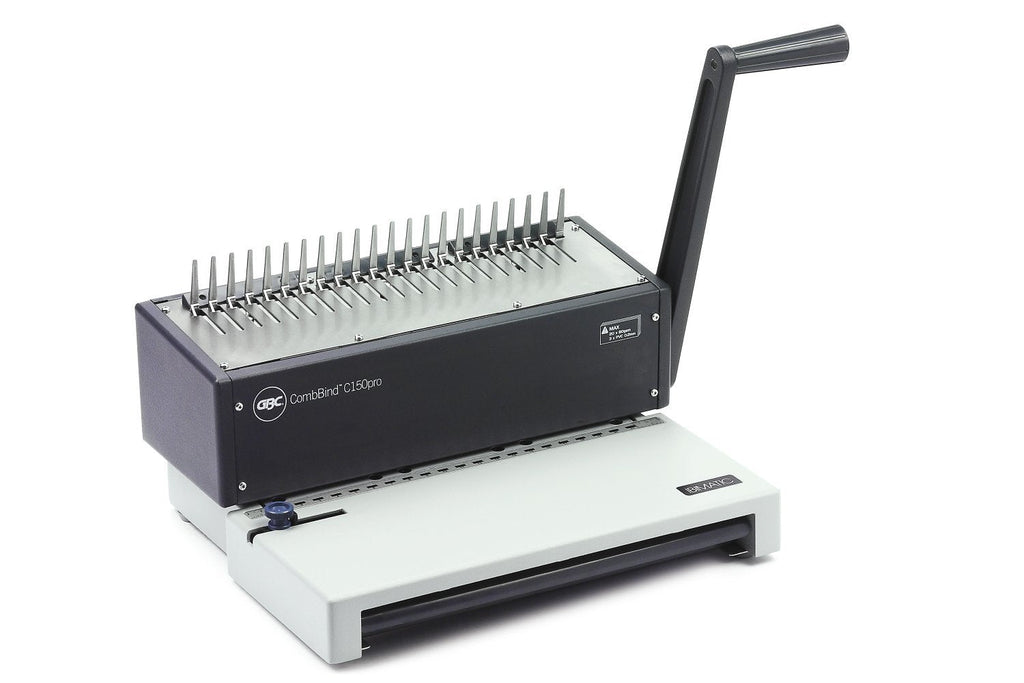 Ideal para la grandes oficinas con muchas necesidades, la Combbind C150pro es una encuadernadora de canutillo fuerte y duradera. De fácil empleo y con una bandeja de recortes de gran capacidad, puede perforar hasta 20 hojas A4 de 80 g y encuadernar hasta 450 hojas.