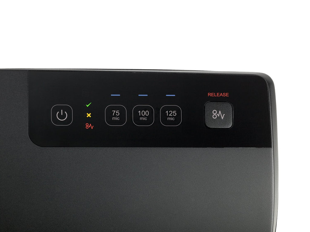 - Selección del espesor de la cartera en micras con solo pulsar un botón