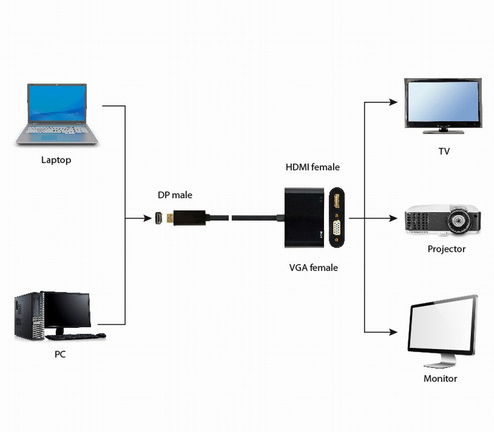 Cable adaptador DisplayPort a HDMI + VGA