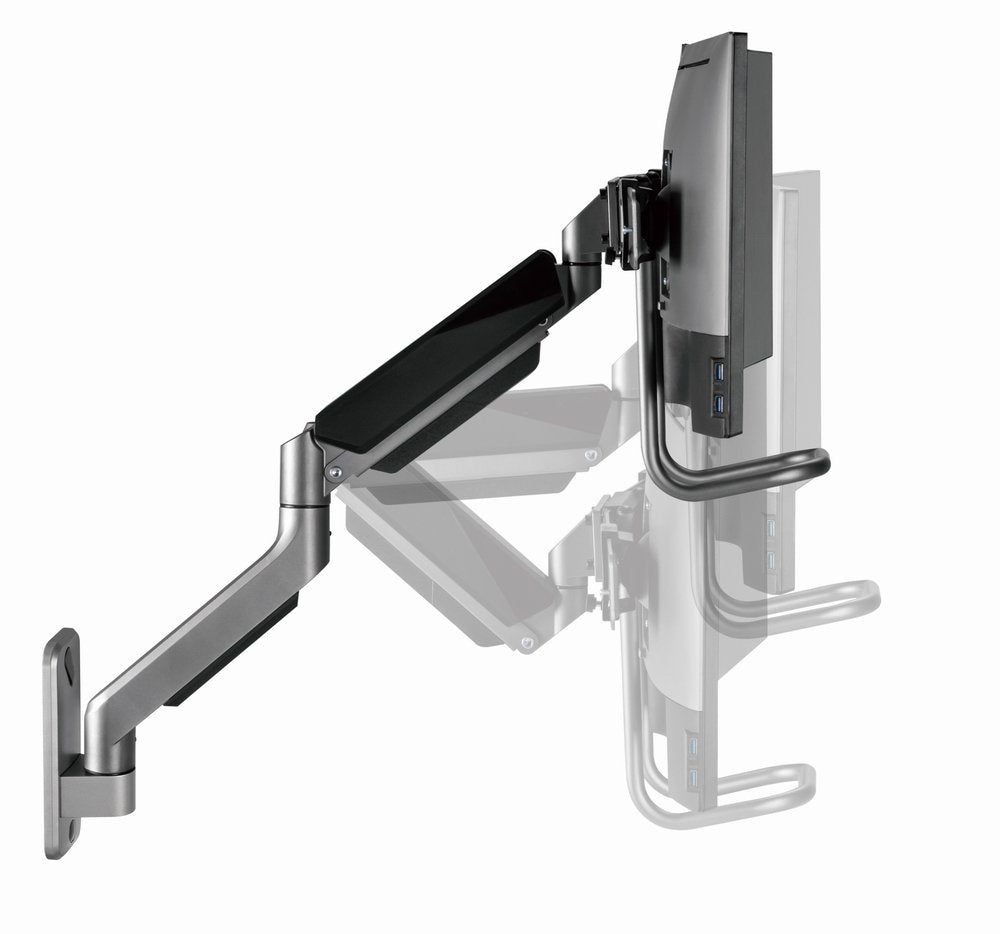 Los brazos giran, extienden y retraen, se inclinan para cambiar los ángulos de lectura y permiten girar las pantallas de modo horizontal a vertical, etc.