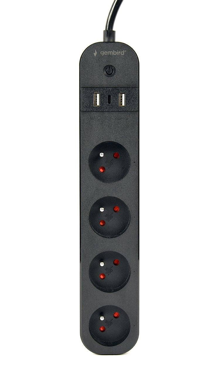 Gembird TSL-PS-F4U-01 regleta inteligente 4 salidas AC Tipo F 1,5 m 3 3680 W Negro