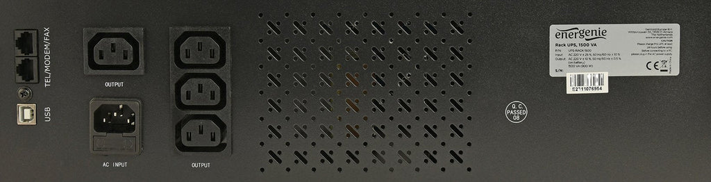 Gembird - Ups rack 19'' 3.4u 1500va, 4xiec 230v out, iec14 in,rj11, usb, lcd, Línea interactiva, 1,5 kVA, 900 W, 220 V, 220 V, 50/60 Hz