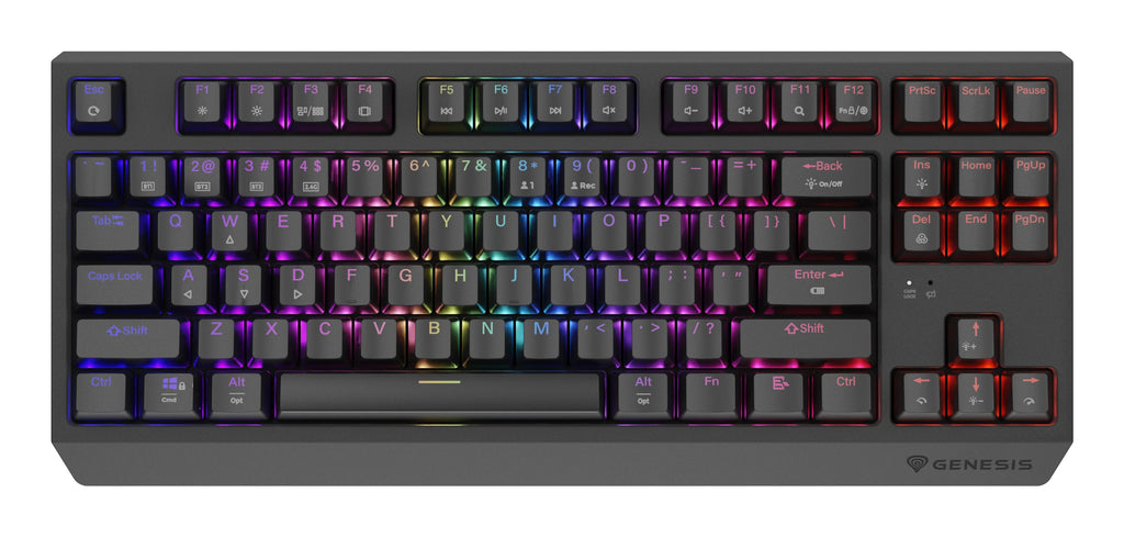 GENESIS Thor 230 TKL, Inalámbrico y alámbrico, USB + RF Wireless + Bluetooth, Interruptor mecánico, QWERTY, LED RGB, Negro