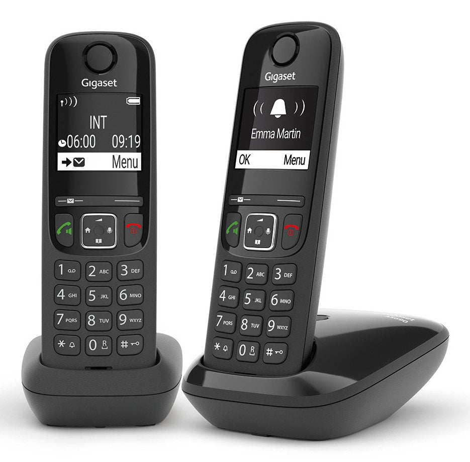 Gigaset AS690 Duo, Teléfono DECT/analógico, Terminal inalámbrico, Altavoz, 100 entradas, Identificador de llamadas, Negro