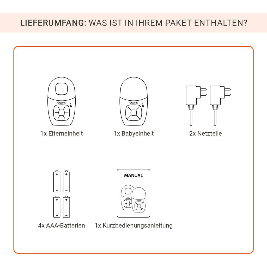 Gigaset BABY 100 Audio, Vigilabebés con tecnología DECT, 300 m, 50 m, 300 m, Gris, Blanco, LCD