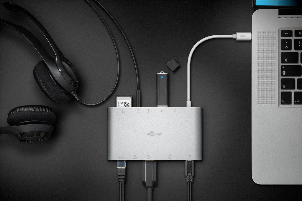 Goobay 62113 base para portátil y replicador de puertos Alámbrico USB 3.2 Gen 1 (3.1 Gen 1) Type-C Plata