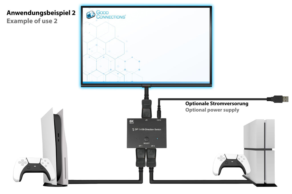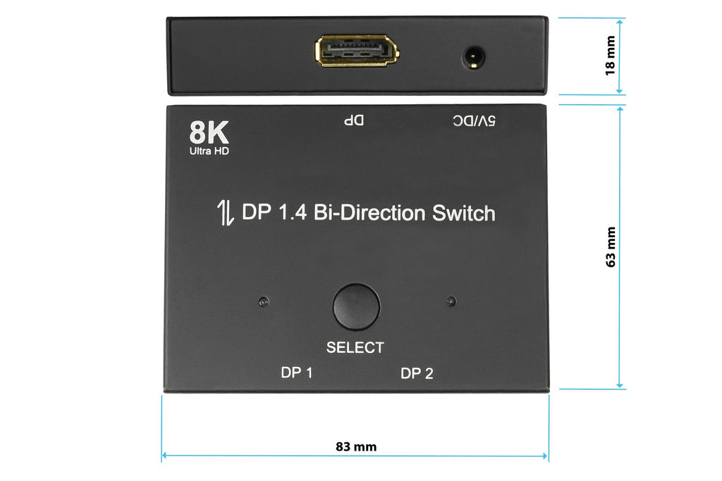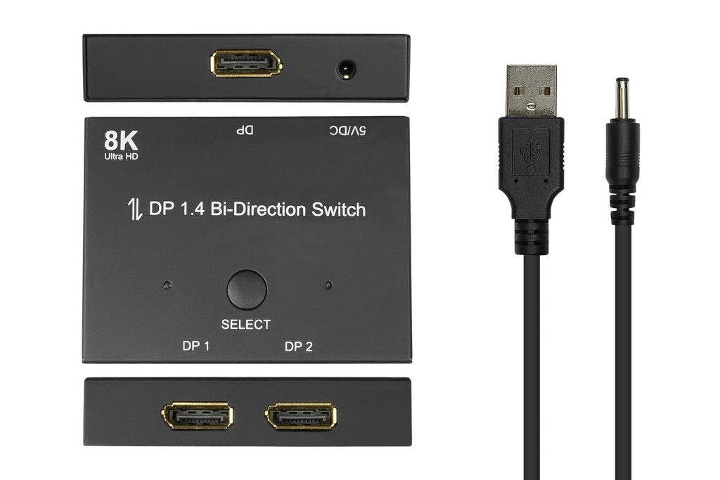 Alcasa DisplayPort Switches, DisplayPort, Metal, Negro, 7680 x 4320, Datos, Oro