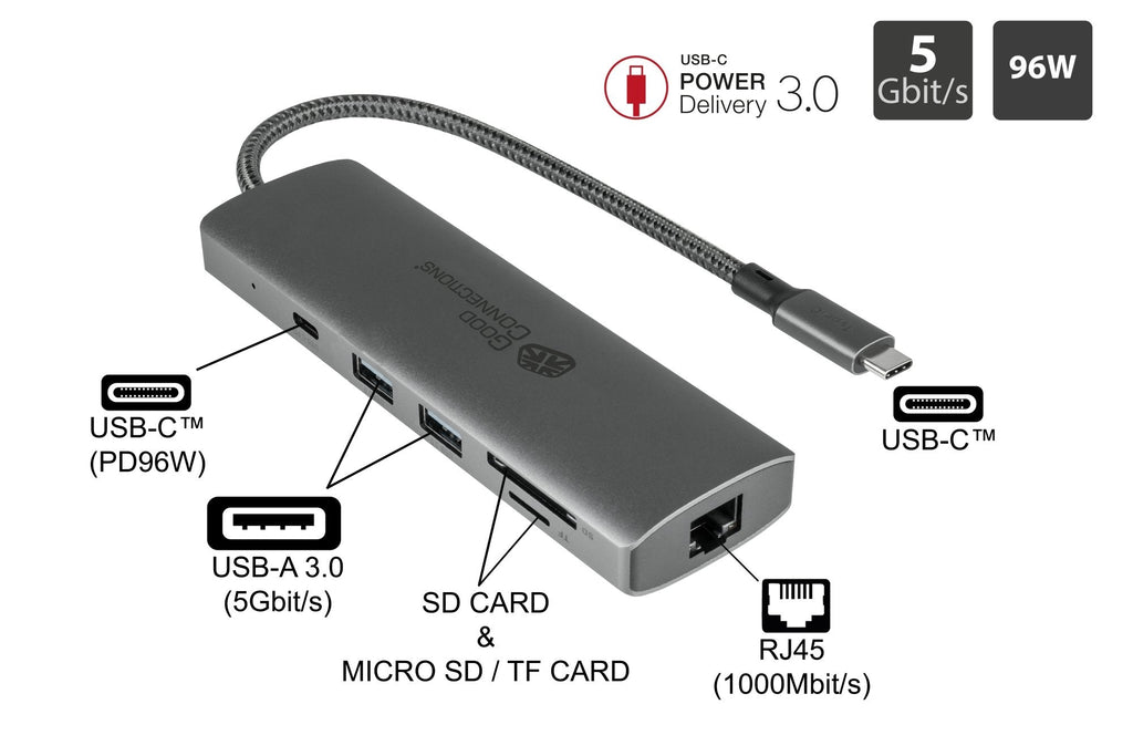 Alcasa HUB-C001A, USB Tipo C, DisplayPort, HDMI, RJ-45, SCART, USB 3.0, USB Tipo C, MicroSD (TransFlash), SD, 5000 Mbit/s, 60 Hz, 3860 x 2160