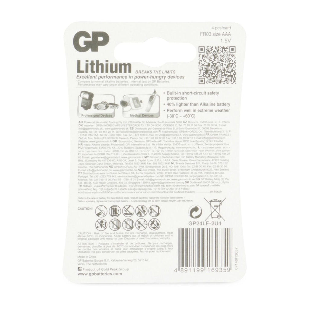 GP Batteries Lithium Primary AAA, Batería de un solo uso, AAA, Alcalino, 1,5 V, 4 pieza(s), Premium