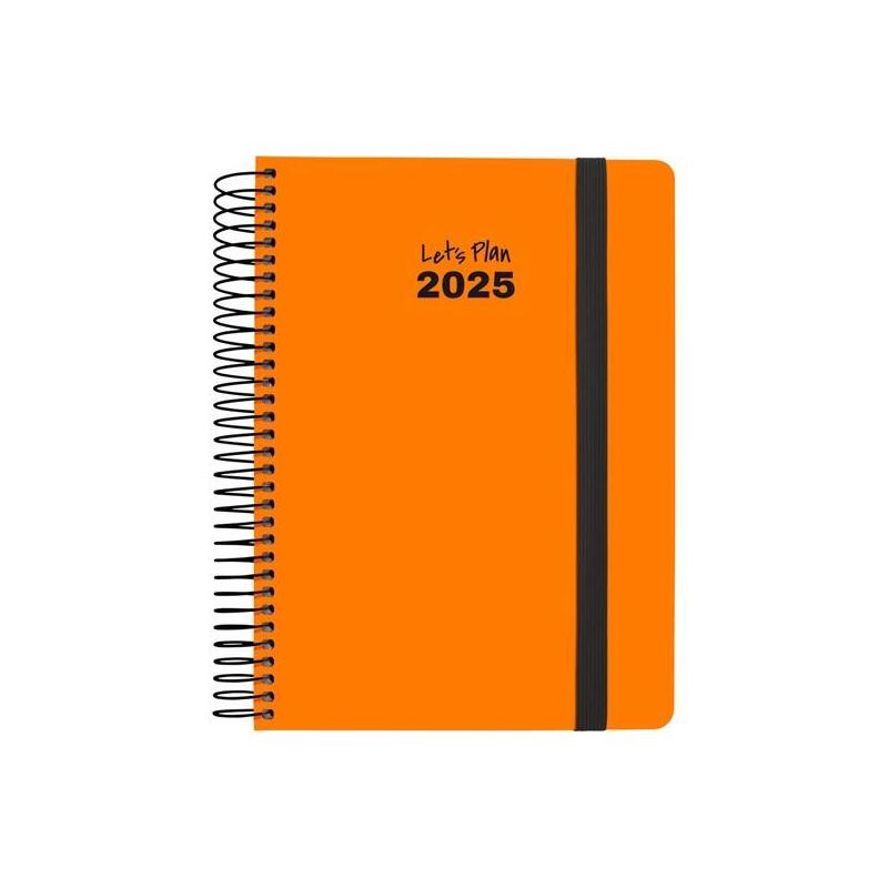 Grafoplas Agenda Anual Serie Neón Espiral 15x21cm D/P Cierre C/Goma Naranja 2025