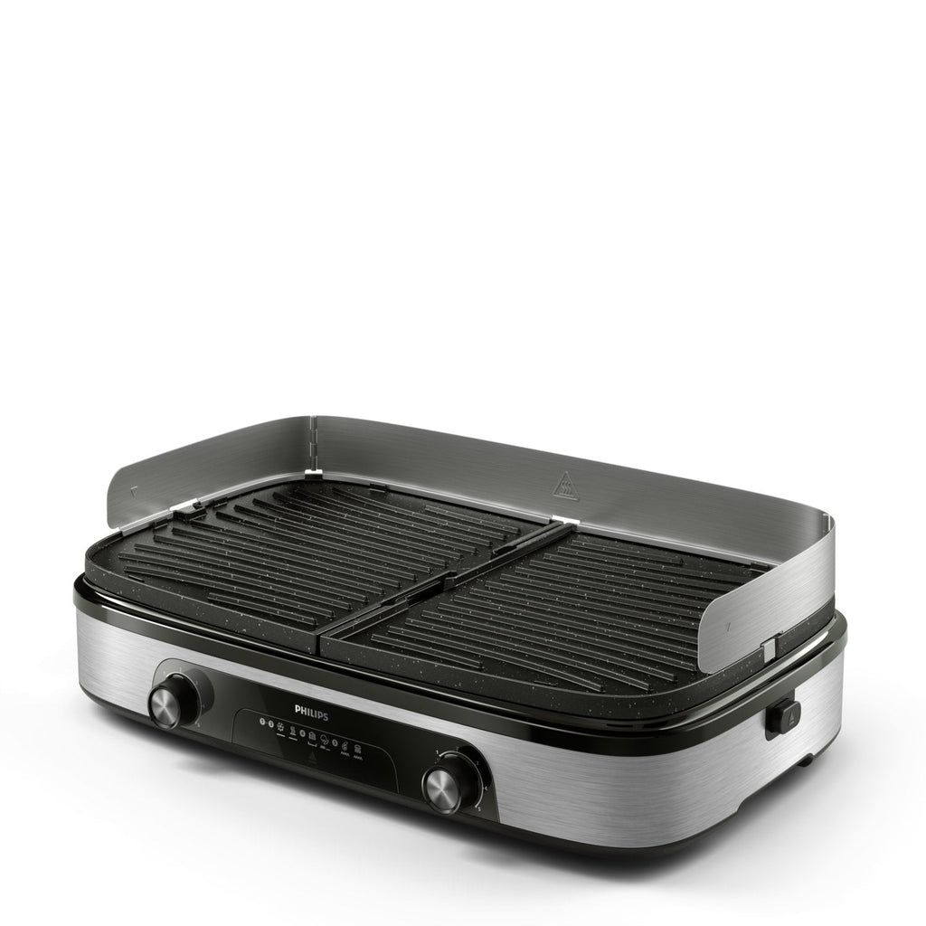 Disfruta de los deliciosos sabores de la parrilla en casa con la plancha-parrilla de Philips. Gracias a sus dos zonas de calentamiento y a sus placas reversibles, podrás disfrutar de una cocina versátil y de unos resultados perfectos.