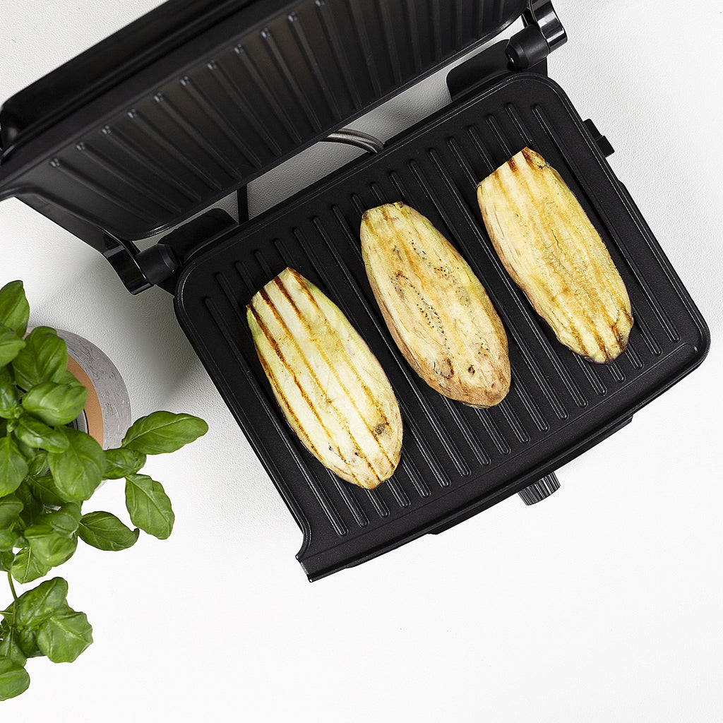 La parrilla de contacto cuenta con una tapa flotante con la que puede preparar a la parrilla todo tipo de ingredientes. Los productos más gruesos no se aplanarán y todos los productos se cocinarán de manera uniforme. Puede abrir la tapa de la parrilla 180⁰, por lo que podrá usar la parrilla de contacto también como plancha. Gracias a una superficie para cocinar de 29,7 x 23,5 cm, tendrá mucho espacio para preparar comida a la parrilla.