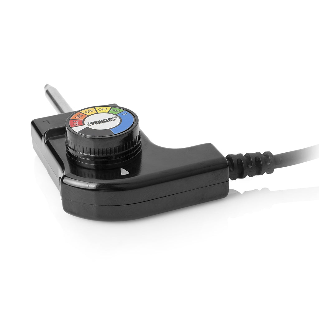 Para asegurarse de que toda la plancha se calienta de manera uniforme, la Princess Table Chef Premium XXL cuenta con un doble elemento calefactor. Gracias a sus 2500 W de potencia, se calienta muy rápido y permanece caliente durante mucho tiempo. Regule la temperatura fácilmente con el termostato situado en el cable de alimentación extraíble. Ajuste la temperatura perfecta para cocinar carne, pescado, verduras e incluso los alimentos del desayuno, como huevos y beicon.