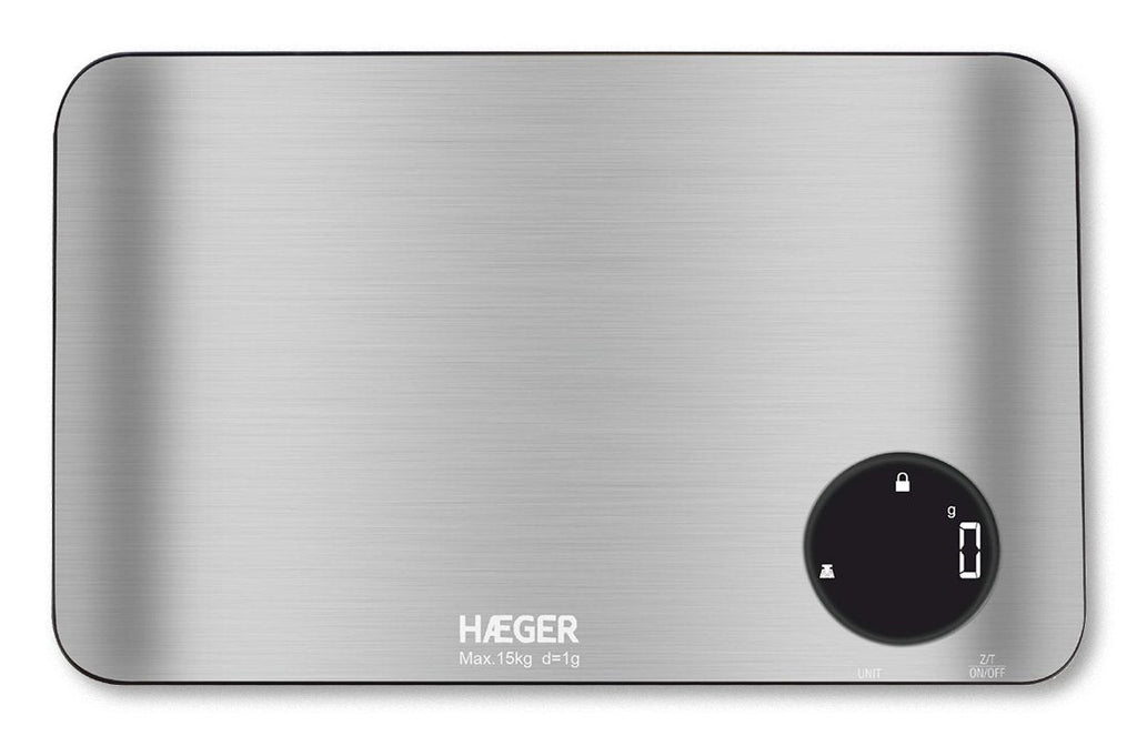 Haeger KS-DIG.012A, Báscula electrónica de cocina, 15 kg, 1 g, Acero inoxidable, Acero inoxidable, Encimera