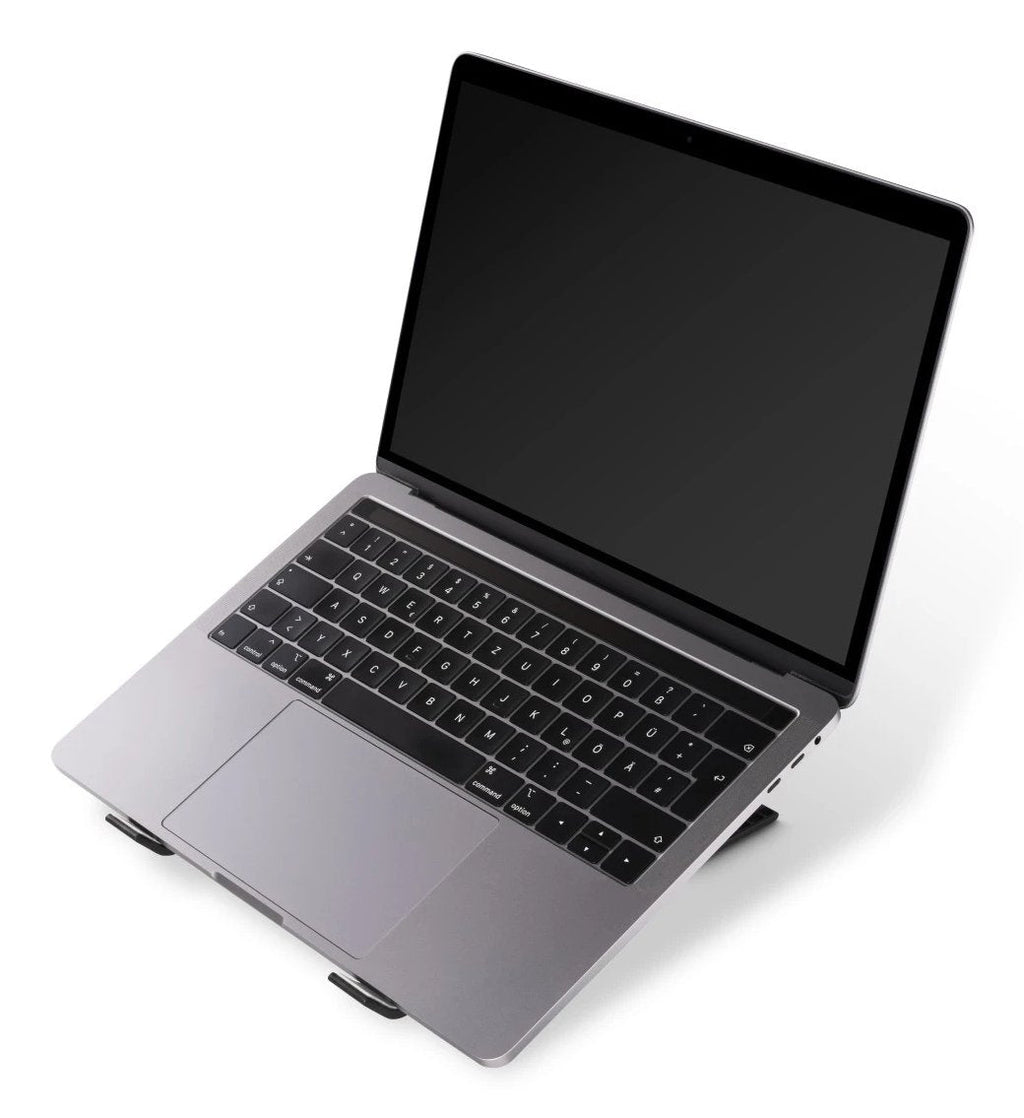 Topes de goma adicionales que evitan rayaduras y el desplazamiento del portátil.