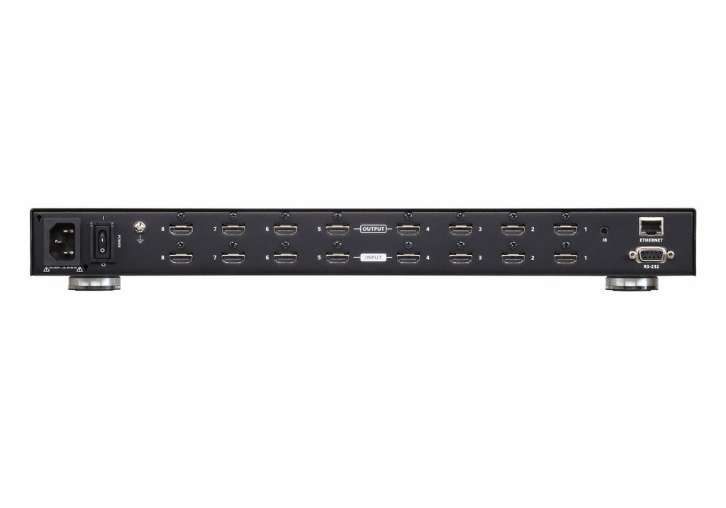 - Permite conectar cualquiera de las 8 fuentes HDMI a cualquiera de las 8 pantallas HDMI