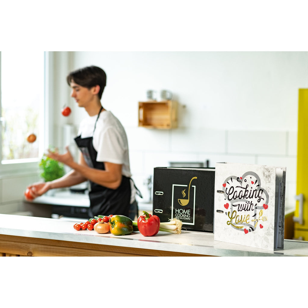 HERMA 19668 carpeta de cartón A4 Negro, Oro, Blanco