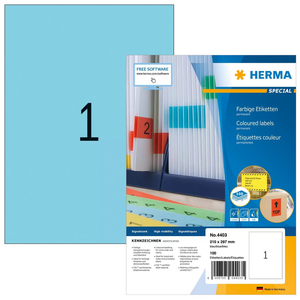 HERMA 4403 etiqueta autoadhesiva Rectángulo Permanente Azul 100 pieza(s)