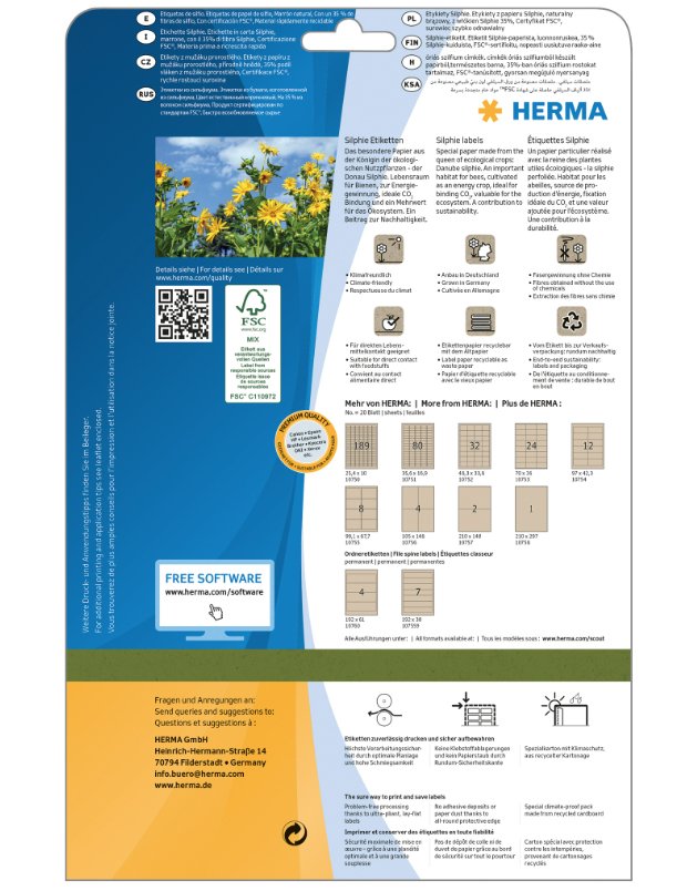 HERMA 10754, Marrón, Rectángulo, Permanente, 97 x 42,3 mm, A4, Universal