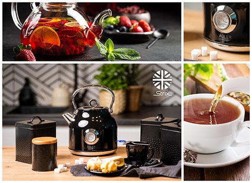 Adler AD 1346B, 1,7 L, 2200 W, Negro, Metálico, Acero inoxidable, Indicador de nivel de agua, Protección contra sobrecalentamiento