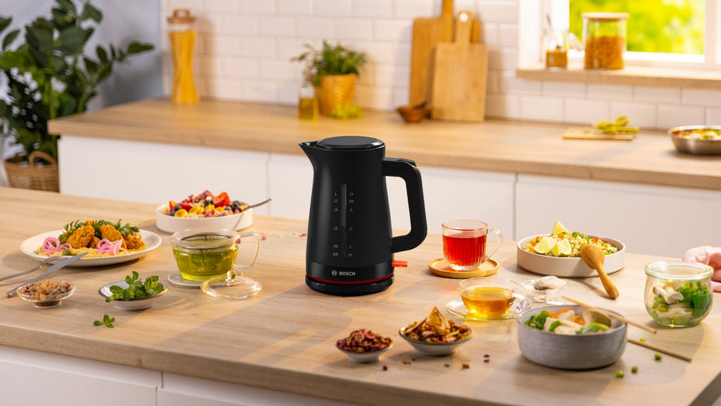 Bosch TWK3M123, 1,7 L, 2400 W, Negro, Indicador de nivel de agua, Protección contra sobrecalentamiento, Sin cables