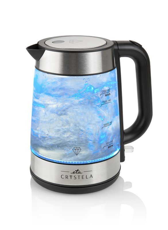 Eta ETA615390000, 1,7 L, 2200 W, Negro, Acero inoxidable, Transparente, Vidrio, Acero inoxidable, Indicador de nivel de agua, Protección contra sobrecalentamiento