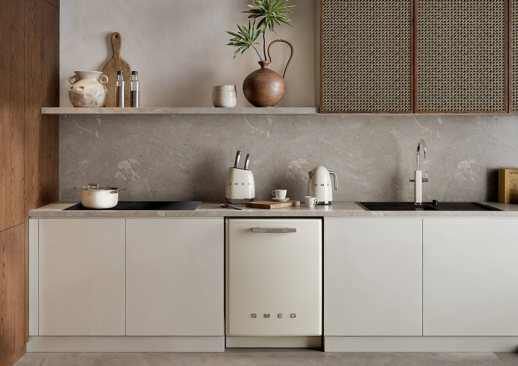 Smeg KLF03CREU, 1,7 L, 2400 W, Crema de color, Plástico, Acero inoxidable, Indicador de nivel de agua, Protección contra sobrecalentamiento