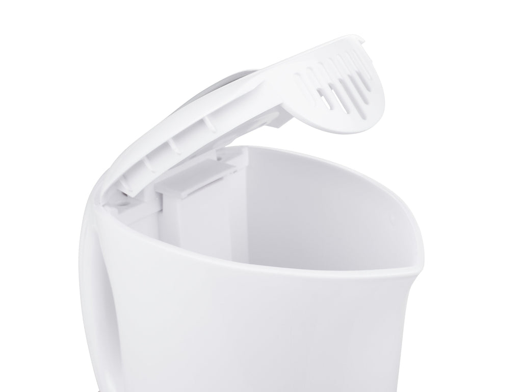La hervidora de agua WK-3372 tiene un práctico tamaño compacto con un volumen de 1 litro. Cuenta con una carcasa blanca de plástico. Gracias a su asa integrada que no se calienta, puede coger la hervidora de agua con facilidad. La hervidora de agua permanece estable en la encimera gracias a su base antideslizante. La protección contra sobrecalentamiento evita que la hervidora de agua se caliente demasiado. La tapa cuenta con un filtro que evita que pase la cal.
