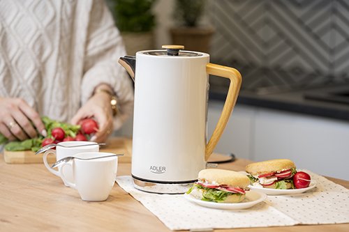 Adler AD 1347W, 1,5 L, 2200 W, Blanco, Madera, Acero inoxidable, Indicador de nivel de agua