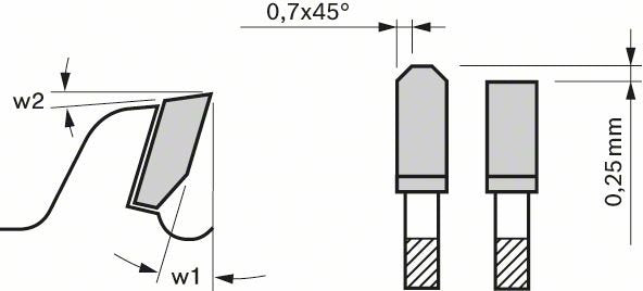 - Forma circular de hoja de sierra: HLTG (dentado trapezoidal)
