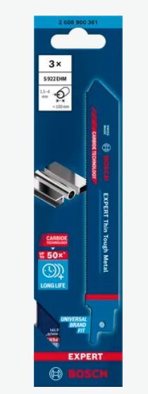 Bosch Expert 2 608 900 362, Hoja para sierra recíproca, Hoja de acero inoxidable (delgada), Carburo, Azul, 1,4 mm, 4 mm