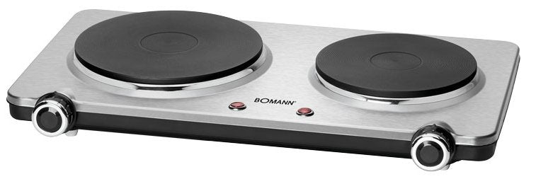 Bomann DKP 5033 E CB, Negro, Acero inoxidable, Encimera, Hornillo eléctrico / Placa eléctrica, Acero inoxidable, 2 zona(s), 2 zona(s)