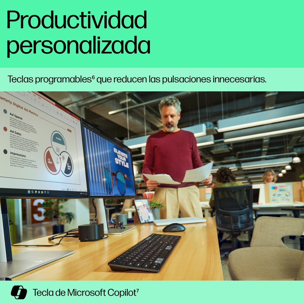 - Aumenta tu productividad con teclas programables[6] que reducen las pulsaciones innecesarias. Con una sola tecla, puedes acceder a la potencia de Microsoft Copilot[7] para trabajar de forma más inteligente y eficiente.