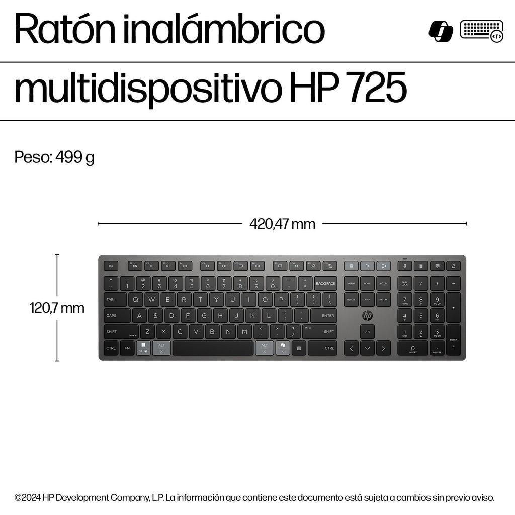 HP 725 Multi-Device Rechargeable Wireless Keyboard teclado Hogar / Oficina RF Wireless + Bluetooth Gris