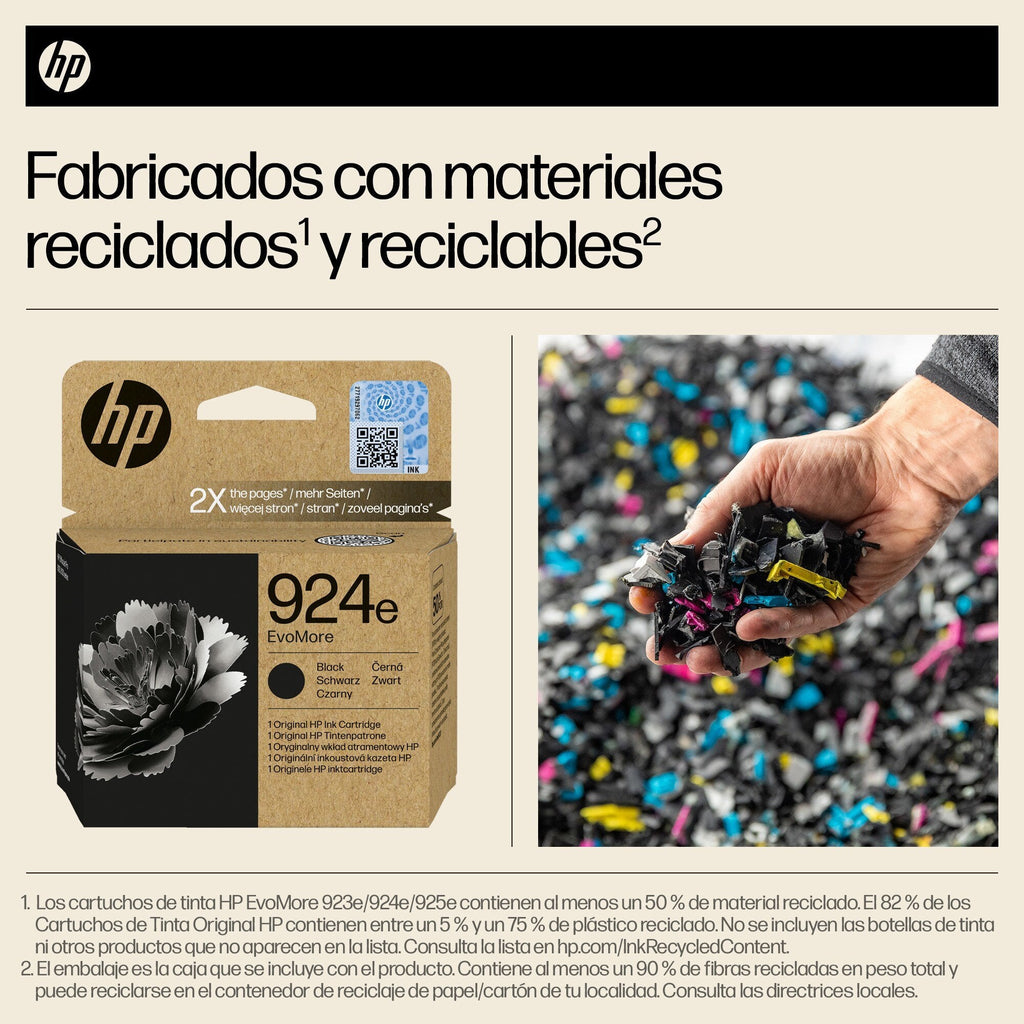 HP 924e EvoMore Black Original Ink Cartridge cartucho de tinta 1 pieza(s) Alto rendimiento (XL) Negro
