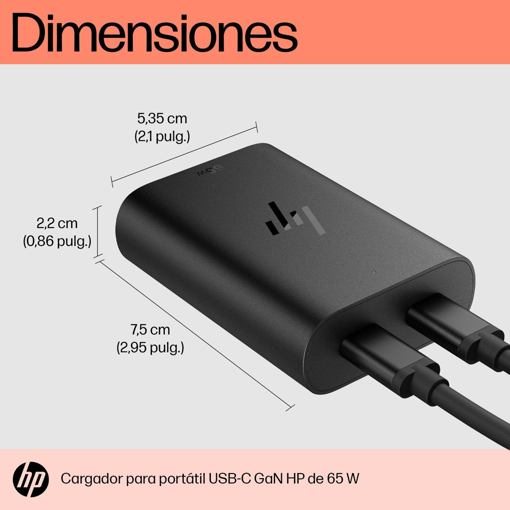 HP 65W GaN USB-C Laptop Charger adaptador e inversor de corriente Interior Negro