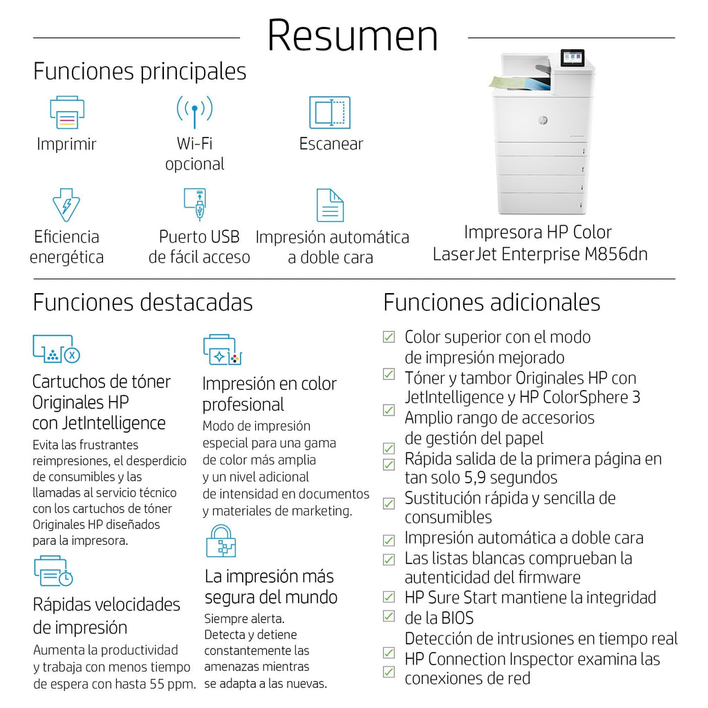 - URL del Reglamento general de seguridad de los productos (GPSR): https://support.hp.com/gb-en/product/setup-user-guides/hp-color-laserjet-enterprise-m856-printer-series/model/21298870?sku=T3U51A ; https://h10032.www1.hp.com/ctg/Manual/c06366062.pdf