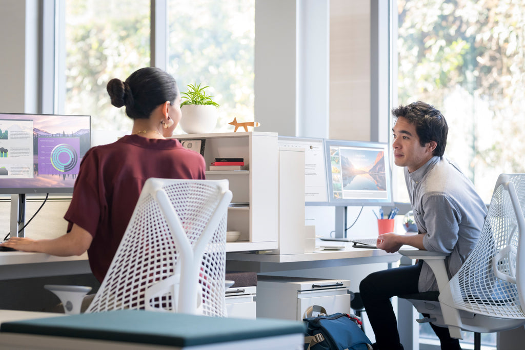 Trabaja sin cansarte la vista durante la jornada laboral con HP Eye Ease, nuestro primer filtro de luz azul integrado siempre en funcionamiento que presenta tus contenidos vívidos sin afectar en absoluto a la precisión del color, no requiere OSD.