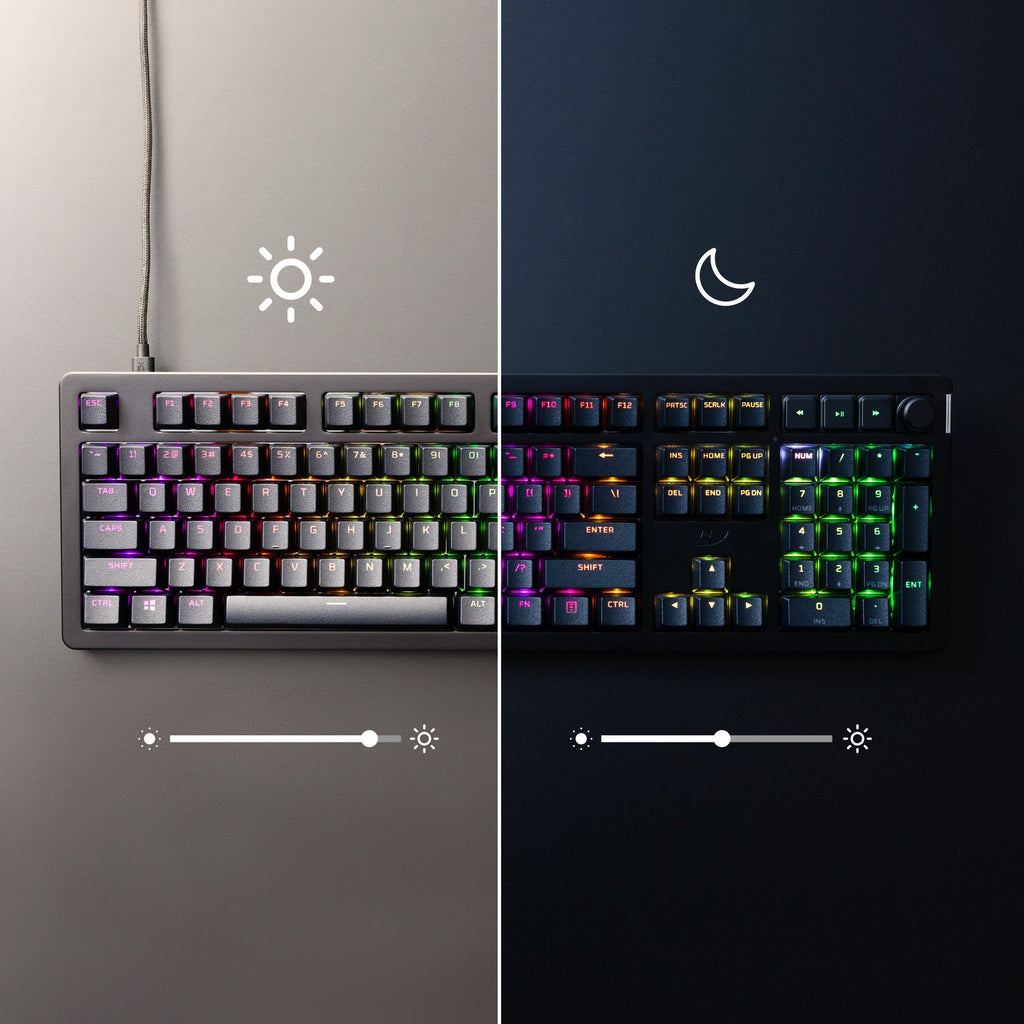 El teclado Alloy Rise es el primer teclado gaming del mundo con un sensor de luz ambiental que permite ajustar de forma dinámica la retroiluminación RGB a las condiciones lumínicas del entorno. Selecciona tus preferencias en NGENUITY para comenzar.