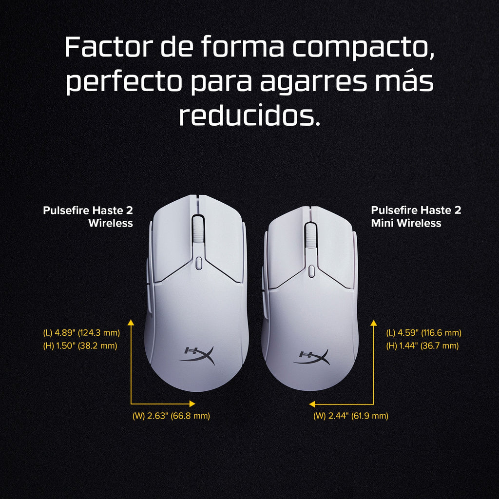 - Todo lo bueno del ratón inalámbrico Pulsefire Haste 2 en una sexta parte de su tamaño Cuenta con los mismos componentes personalizados de alto rendimiento que HyperX. Se ha diseñado para jugadores con manos pequeñas o para aquellos que prefieren un ratón más pequeño.