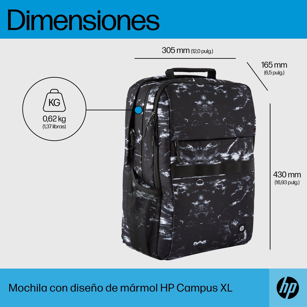 HP Campus XL Marble Stone Backpack mochila Mochila informal Negro Polietileno de baja densidad (LDPE), Plástico reciclado
