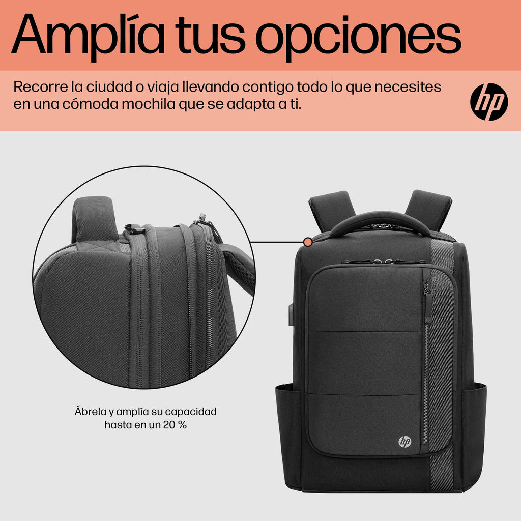 - ¿No paras de moverte? Lleva todo lo que necesitas cuando vas a trabajar a la oficina o si estás de viaje con una cómoda mochila que se adapta a tu ritmo de vida. ¿Necesitas más espacio? Abre la cremallera y amplía la capacidad de la bolsa en un 20 %. Con tanto espacio, estás preparado para lo que el trabajo o la vida te depare.
