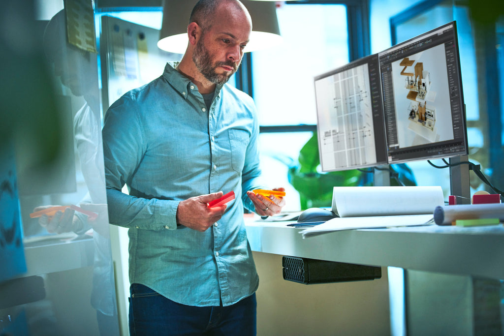 Trabaja sin esfuerzo arrastrando y soltando entre distintos dispositivos utilizando un solo ratón. Se mueve contigo, incluso entre los sistemas operativos Windows® y MacOS®.