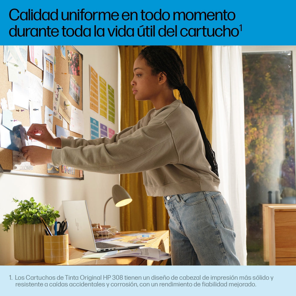 HP 308 Black Original Ink Cartridge cartucho de tinta 1 pieza(s) Rendimiento estándar Negro