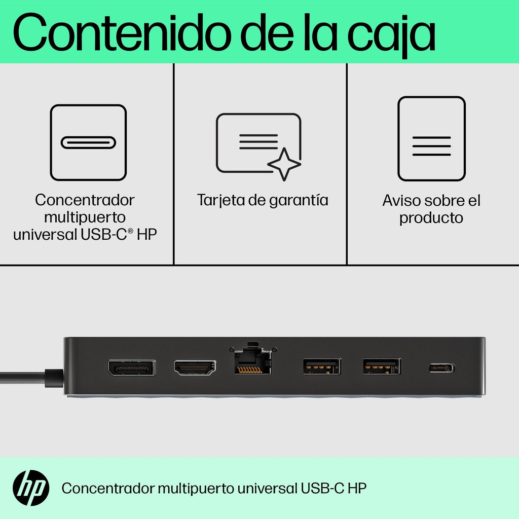 HP Universal USB-C Multiport Hub Acoplamiento USB 3.2 Gen 2 (3.1 Gen 2) Type-C Negro