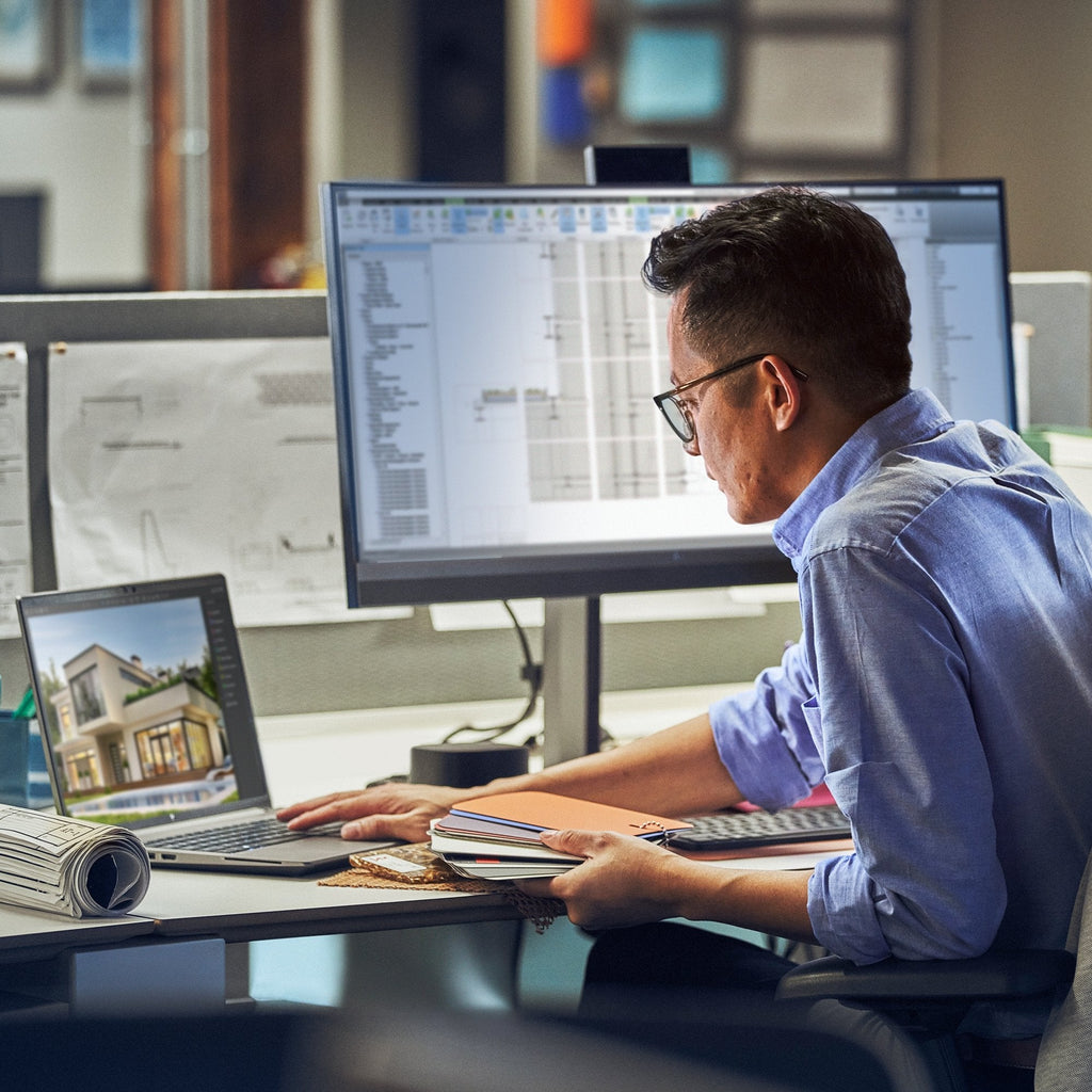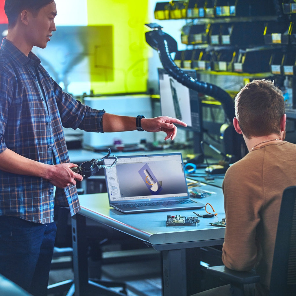 Con la batería de larga duración, el software de cancelación de ruidos por IA para bloquear cualquier distracción sonora de fondo y un dispositivo tan potente que te permite ejecutar aplicaciones de software profesionales, podrás trabajar y colaborar con eficacia allá donde estés.