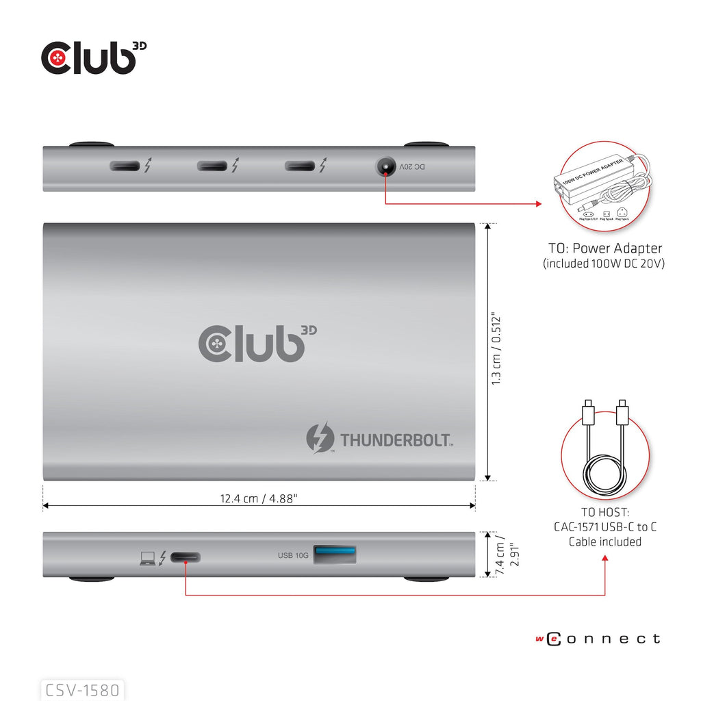 CLUB3D CSV-1580, Acoplamiento, Thunderbolt 4, Plata, OS Support: Windows10™ or above version supported Thunderbolt™ 4 host MacOS™ 11 or above..., CC, 10 W