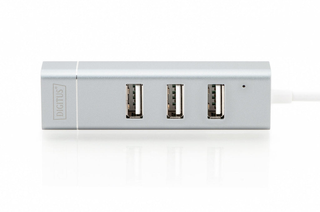 Con el concentrador USB con funciones de red integradas podrá añadir a su ordenador portátil con interfaz Type-C™ tres puertos USB 2.0 estándar, así como una conexión de red Fast Ethernet. Gracias a la sencilla configuración Plug and Play, no es necesario instalar ningún controlador ni configurar los ajustes del sistema.