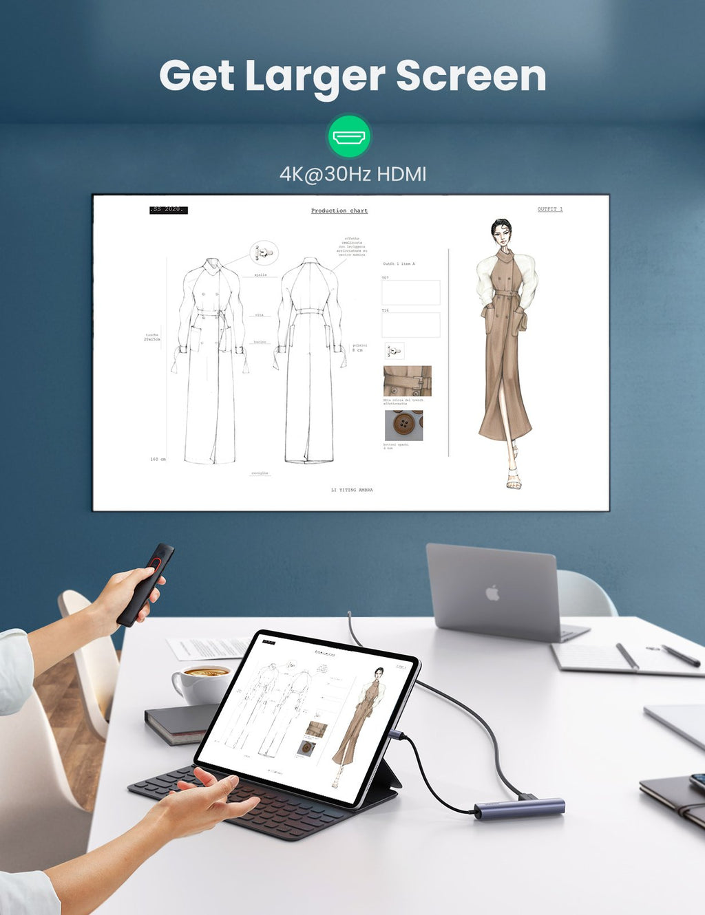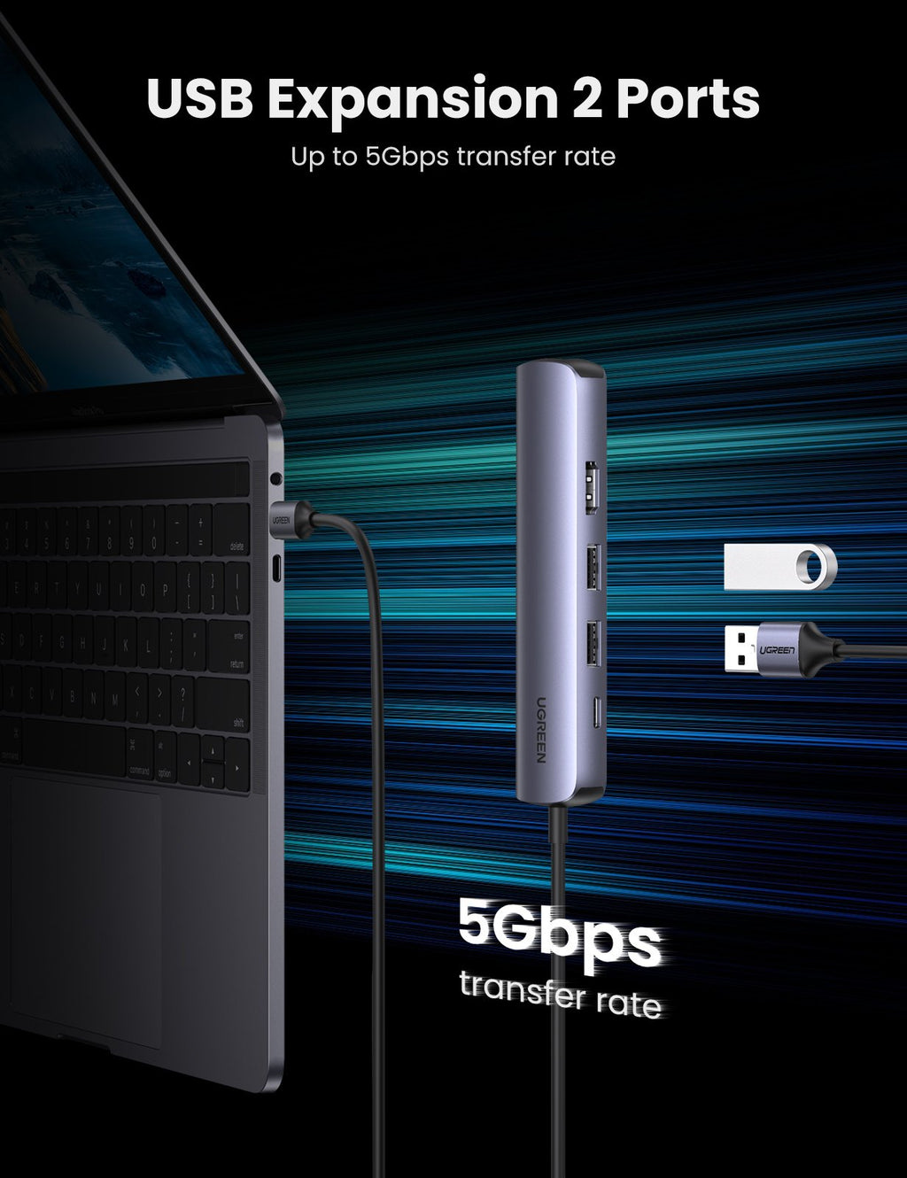 Ugreen 10919 base para portátil y replicador de puertos Alámbrico USB 3.2 Gen 1 (3.1 Gen 1) Type-C Gris
