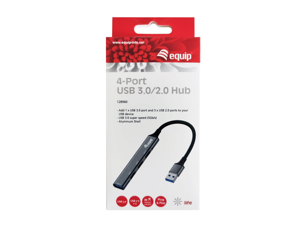 Equip 128960 hub de interfaz USB 3.2 Gen 1 (3.1 Gen 1) Type-A 5000 Mbit/s Negro, Gris